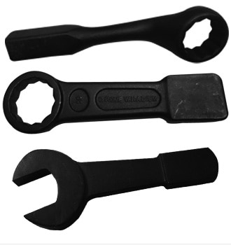 SAPSONS Extra Heavy Duty Slugging / Striking Wrenches are designed for use with hammers where impact or shock loading is required for loosening of frozen and rusty nuts and bolts. These slugging wrenches are duly forged from superior grade special alloy steel. The blanks are duly machined with the wrench openings broached to close tolerance as per federal specifications and undergo a heat treatment process including stress relieving before undergoing short blasting and surface finish operations. SAPSONS Slugging Wrenches are guaranteed for superior performance and durability.